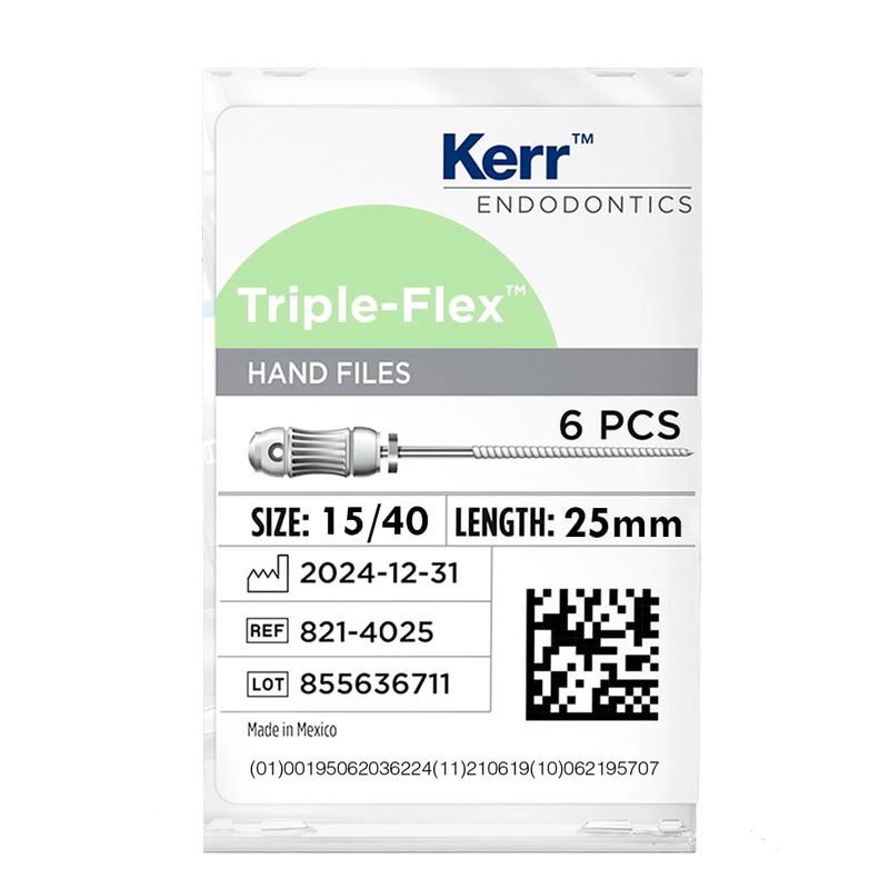A Lima Triple-Flex 1° Série 25mm N°20 - KAVO é um instrumento essencial na prática endodôntica, projetado para resolver problemas relacionados à limpeza e modelagem de canais radiculares. A instrumentação adequada é crucial para o sucesso do tratamento endodôntico, prevenindo infecções e garantindo a saúde dental a longo prazo.